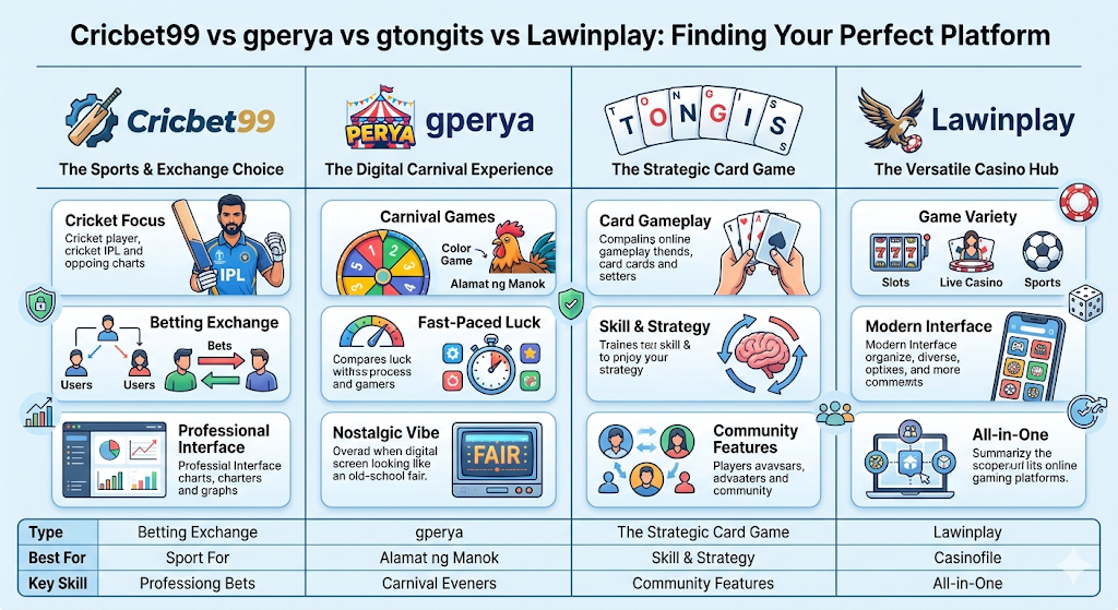In the rapidly evolving world of online entertainment, players are often caught in a dilemma when choosing between various platforms. Today, we dive deep into the specific features of Cricbet99 vs gperya vs gtongits vs Lawinplay to see how they stack up against each other. Each of these platforms caters to a specific niche, ranging from international sports exchange to hyper-local Filipino favorites.